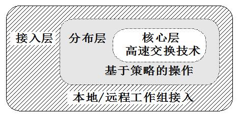 从逻辑上,大型网络可分为核心层、分布层和接入层,每层都有其特点。网络层次如图2所示